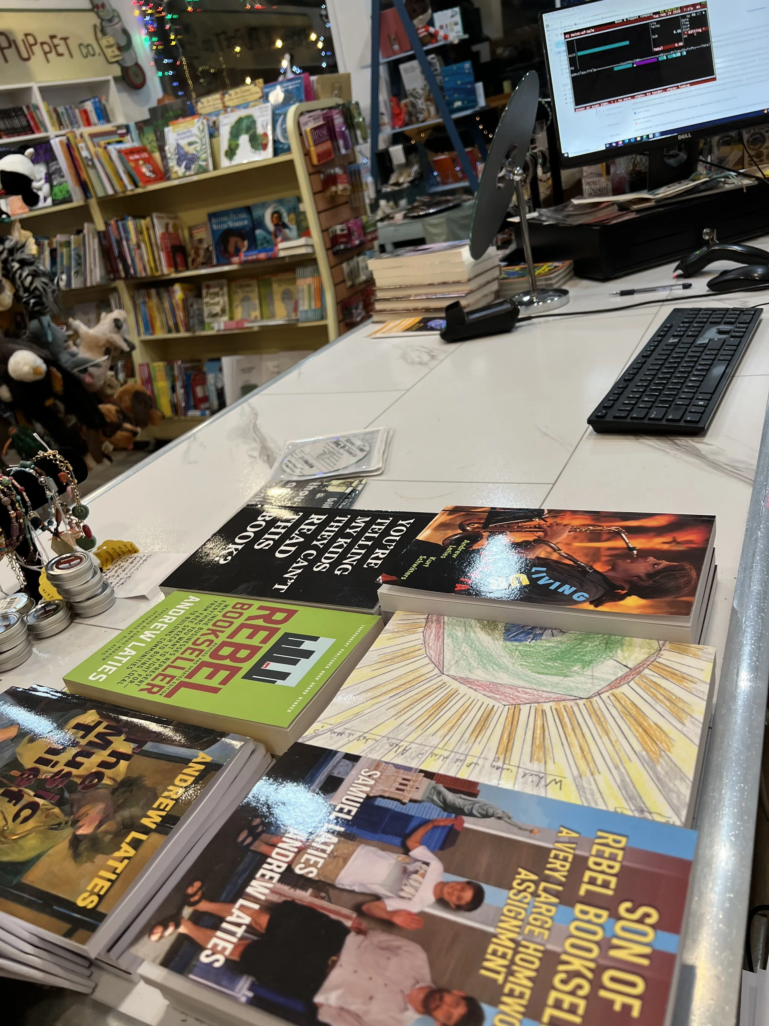 Along with my 2011 second edition of Rebel Bookseller, I’ve been displaying my six books at the cash register. I tell customers, this is the only bookstore where you’ll find these books!